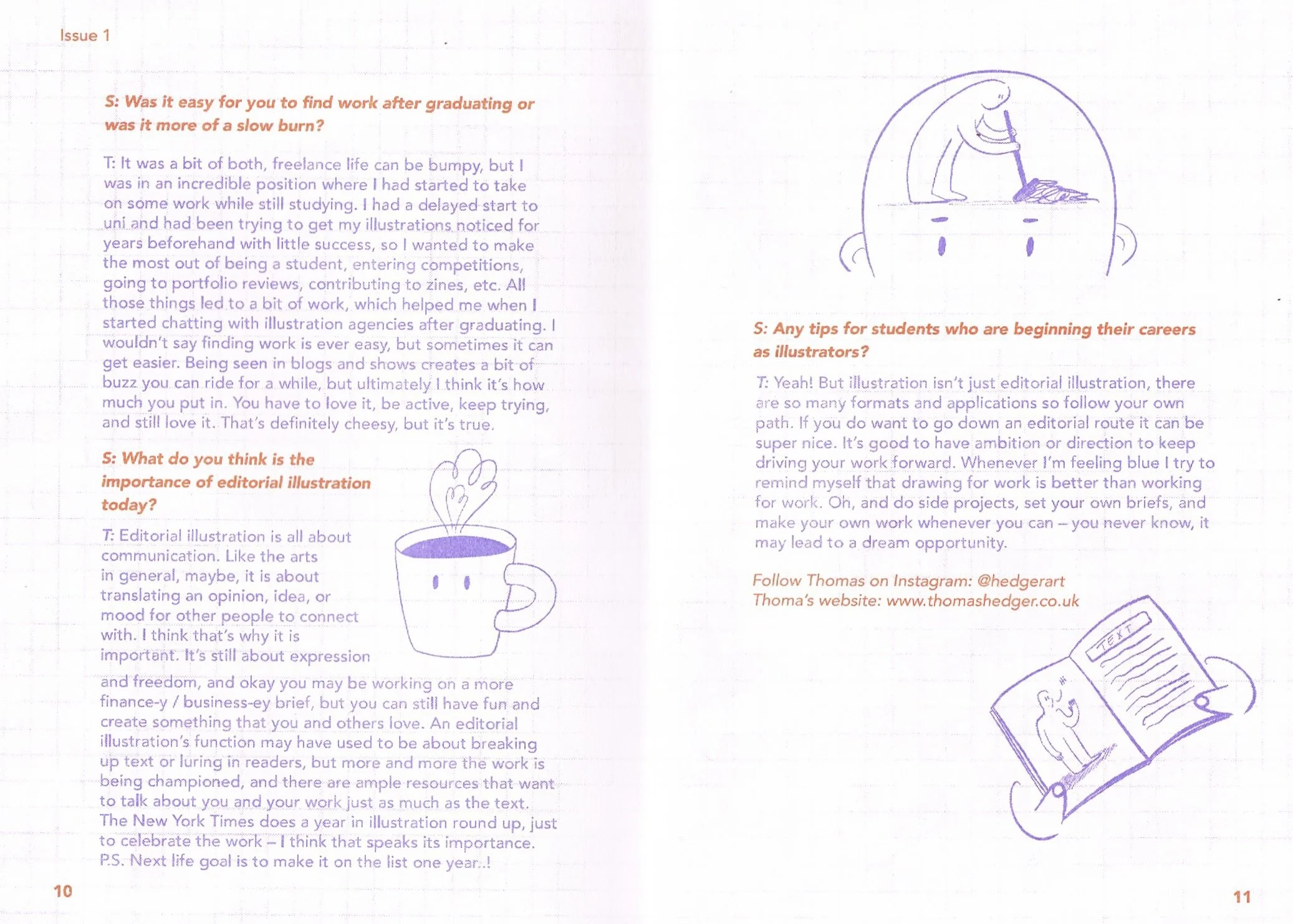 Sandbox UAL Spot Illustrations Spot Illustrations for an interview in UAL Camberwells student magazine.